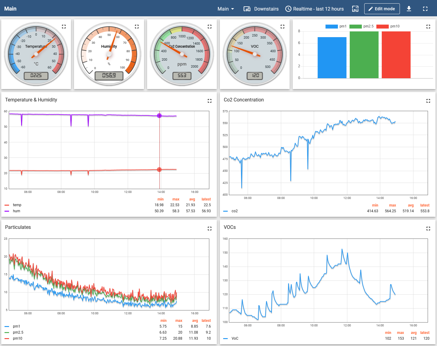- ESP32 based design logs and transmits current conditions to a Thingsboard instance over WiFi