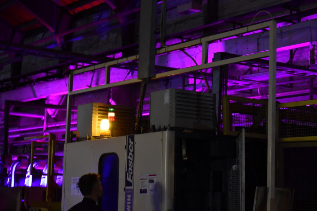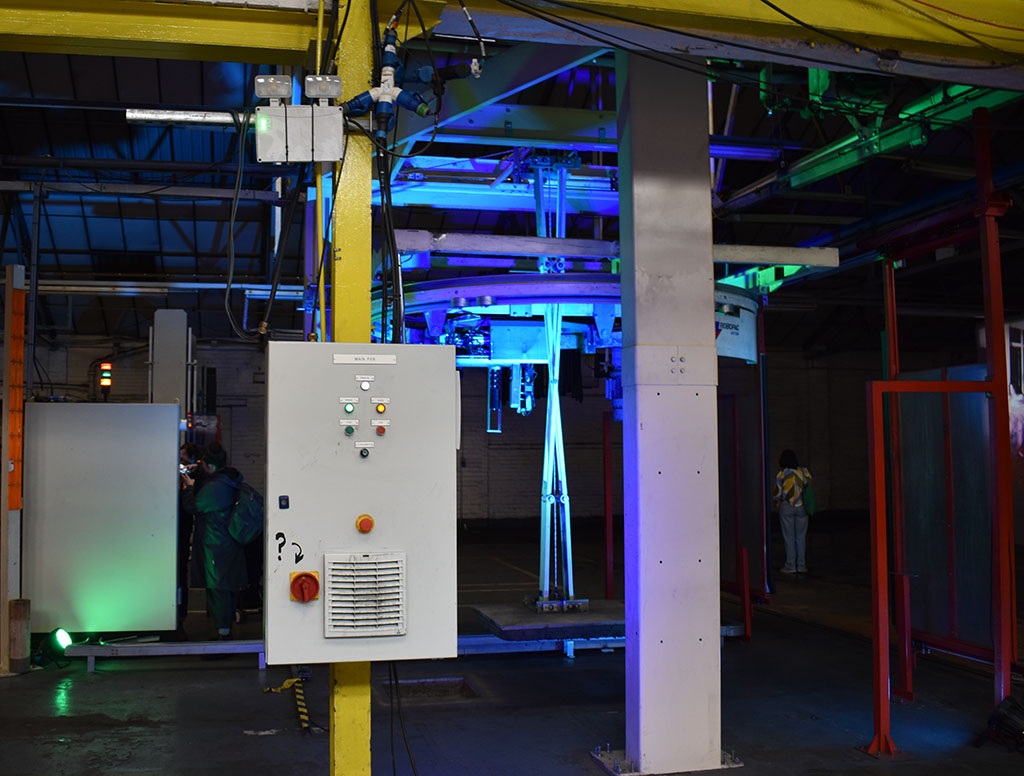 The installations focused on repurposing equipment from the factory floor including computer monitors, sirens and beacons. To achieve this, power supplies, relays and connectors were scavenged from within the machinery reducing the carbon impact of the artwork.